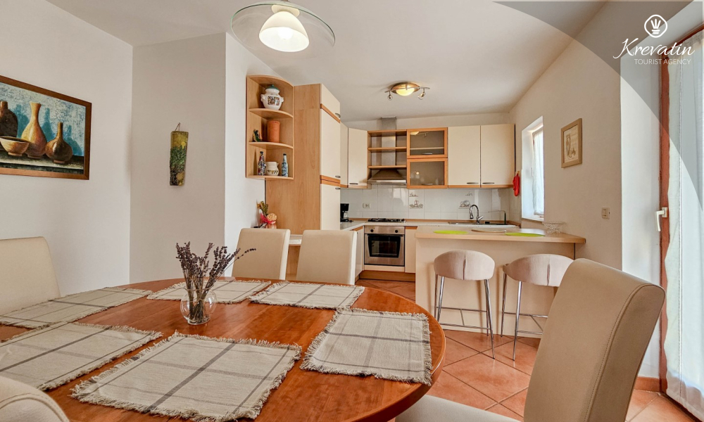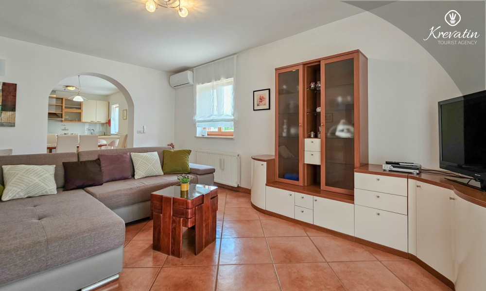 Die Wohnung in Fermići, Istrien, befindet sich im ersten Stock und ist die ideale Wahl für Ihren unvergesslichen Urlaub. Dieses komfortable Apartment bietet Platz für bis zu acht Personen und bietet alles, was Sie für einen angenehmen Aufenthalt benötigen.