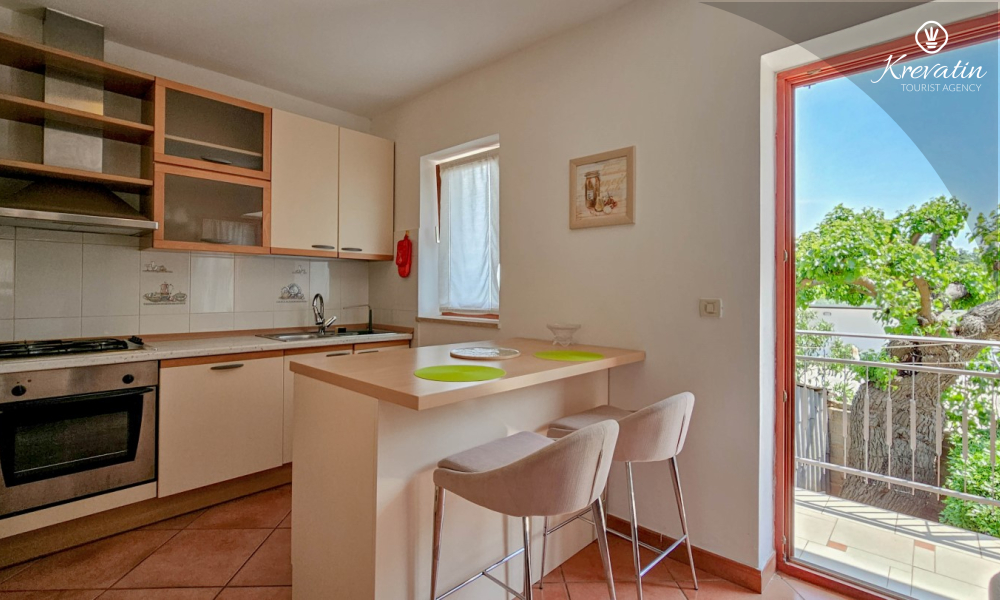 Sie können die frische Luft und die Düfte des Mittelmeers genießen, denn vom Balkon aus haben Sie einen schönen Blick auf die Umgebung und das Meer, wo Sie nach einem aufregenden Tag voller Entdeckungen entspannen können. Wenn Sie die Umgebung erkunden möchten, sollten Sie unbedingt Novigrad besuchen. Diese malerische Küstenstadt an der Westküste Istriens bietet eine reiche Geschichte, wunderschöne Strände und zahlreiche gastronomische und kulturelle Attraktionen.