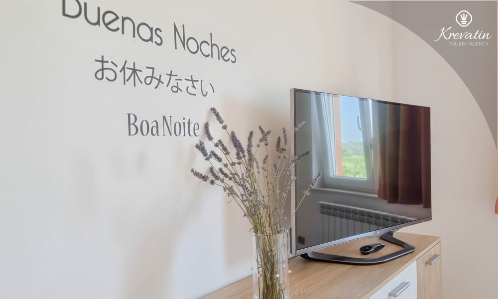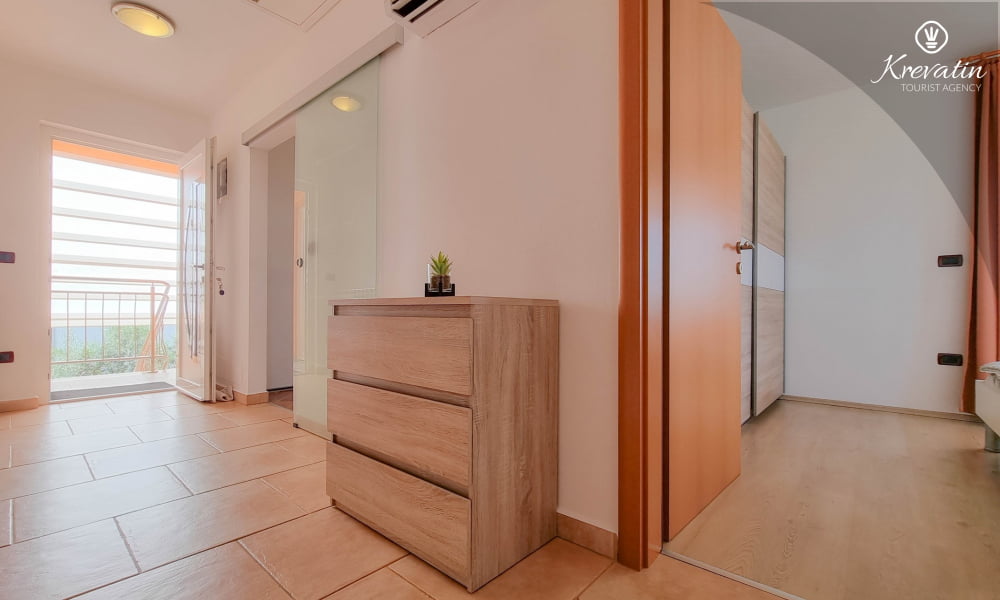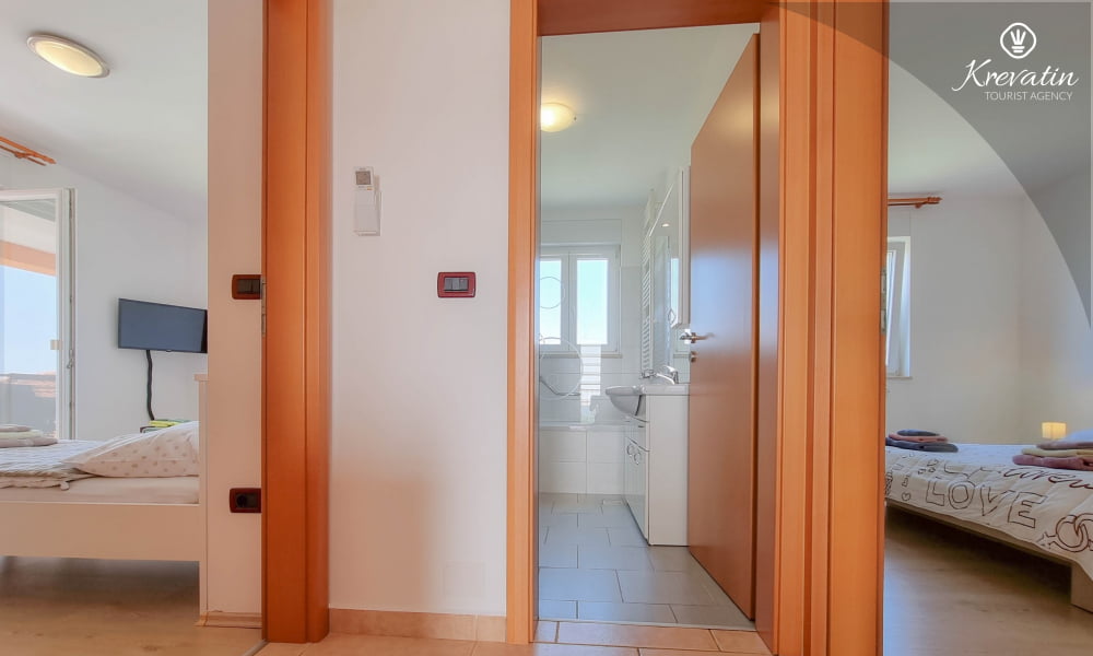 Es verfügt über zwei Schlafzimmer, ein Wohnzimmer und eine Küche mit Essbereich – ausgestattet mit allem, was Sie für die Zubereitung einfacher Mahlzeiten benötigen. Das Apartment bietet ein Badezimmer mit Badewanne und WC sowie ein zusätzliches WC für zusätzlichen Komfort. Es gibt außerdem einen schönen Balkon mit Meerblick und eine Gartenterrasse, die Sie mit den Gästen zweier weiterer Apartments teilen und die Gelegenheit bietet, sich zu treffen und die Natur zu genießen.