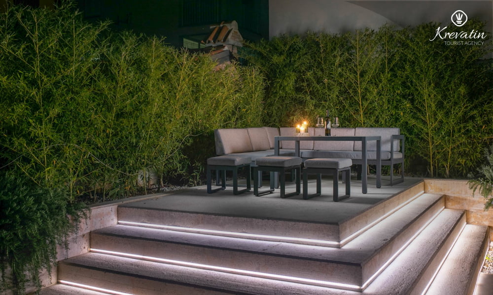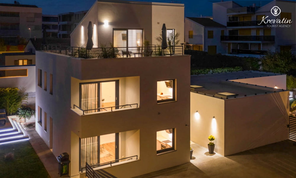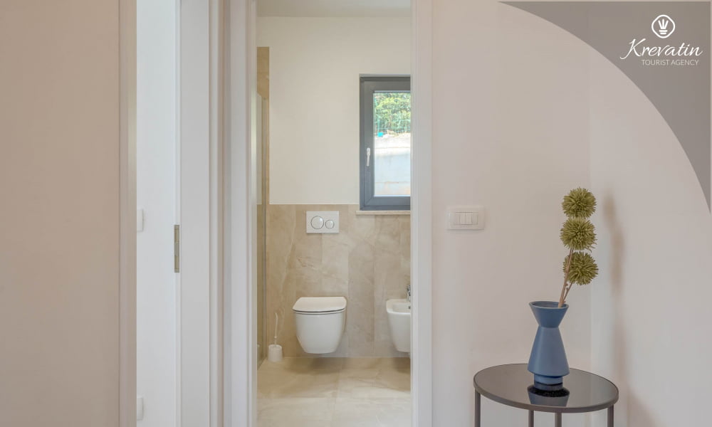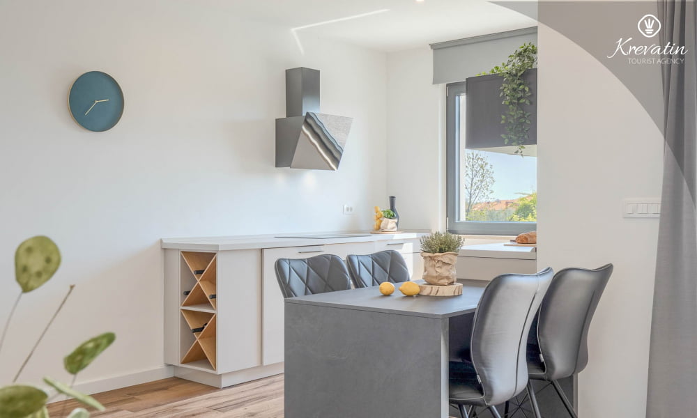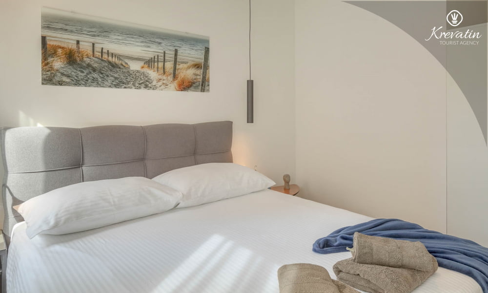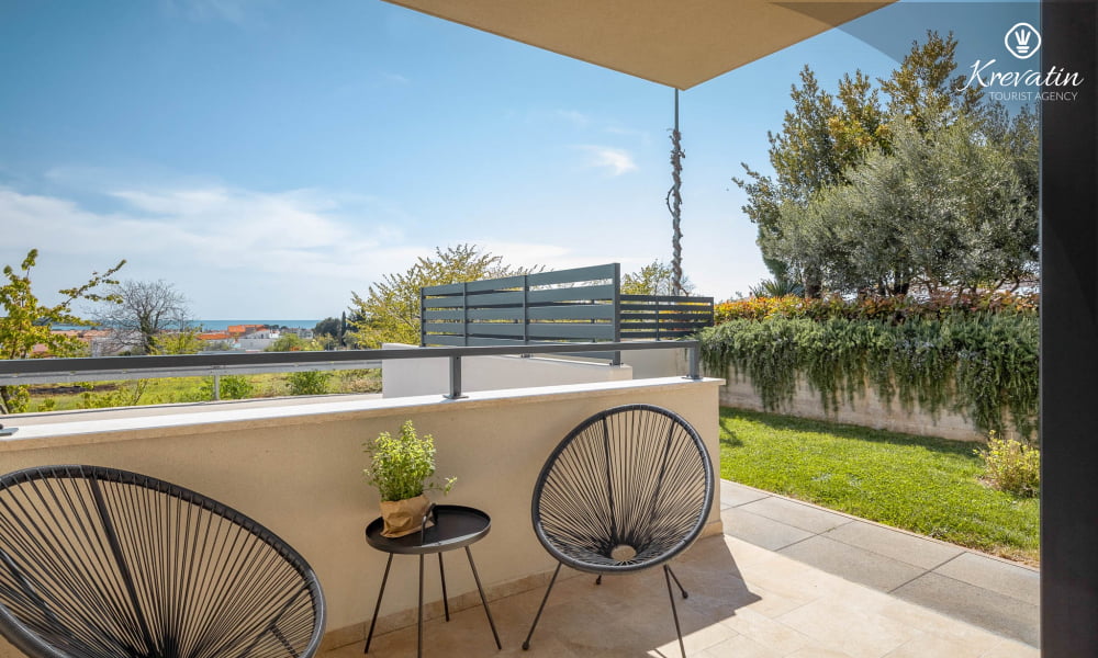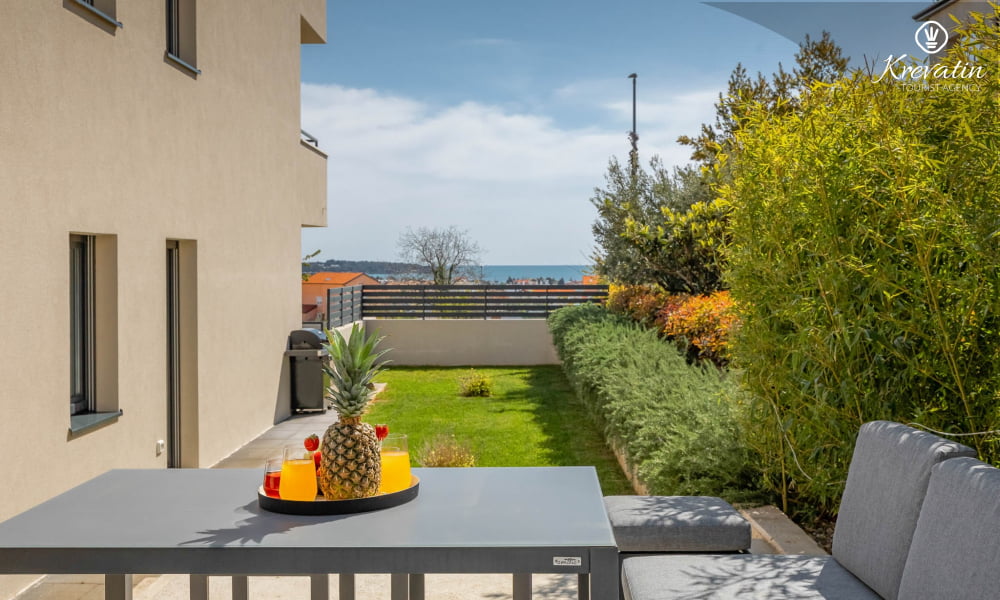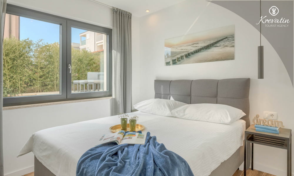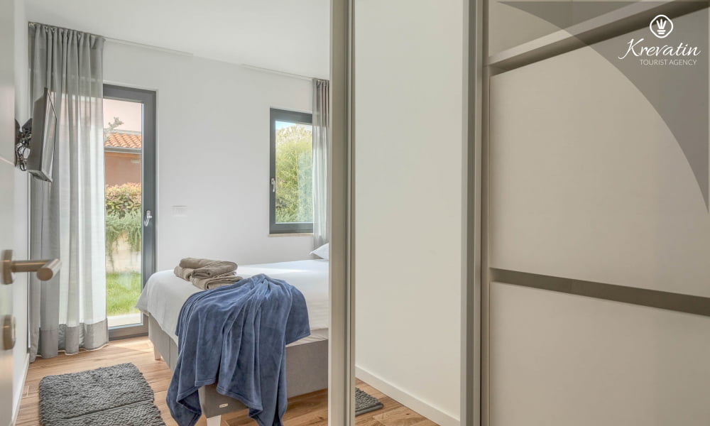 Diese Ferienwohnung für 4 Personen, im Erdgeschoss gelegen, besteht aus zwei Schlafzimmer, ein Wohnzimmer und eine Küche. Die Küche ist mit Elektroherd, Kühlschrank und Kaffeemaschine ausgestattet. Desweiteren gibt es zwei Badezimmern, eine mit Dusche und Toilete und eine mit Toilete, sowie eine schöne Terrase mit Terrassenmöbel und kleine Garten. Inklusive sind SAT-TV, Klimaanlage, WLAN, Bettwäsche und Handtücher. Haustiere sind nicht willkommen. Es gibt auch eine Dachterrasse Whit schönen Blick auf die gesamte Novigrad und das Meer, und ist über die gemeinsame Nutzung zur Verfügung.