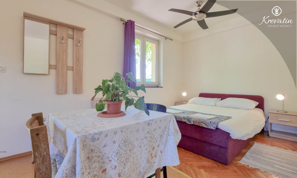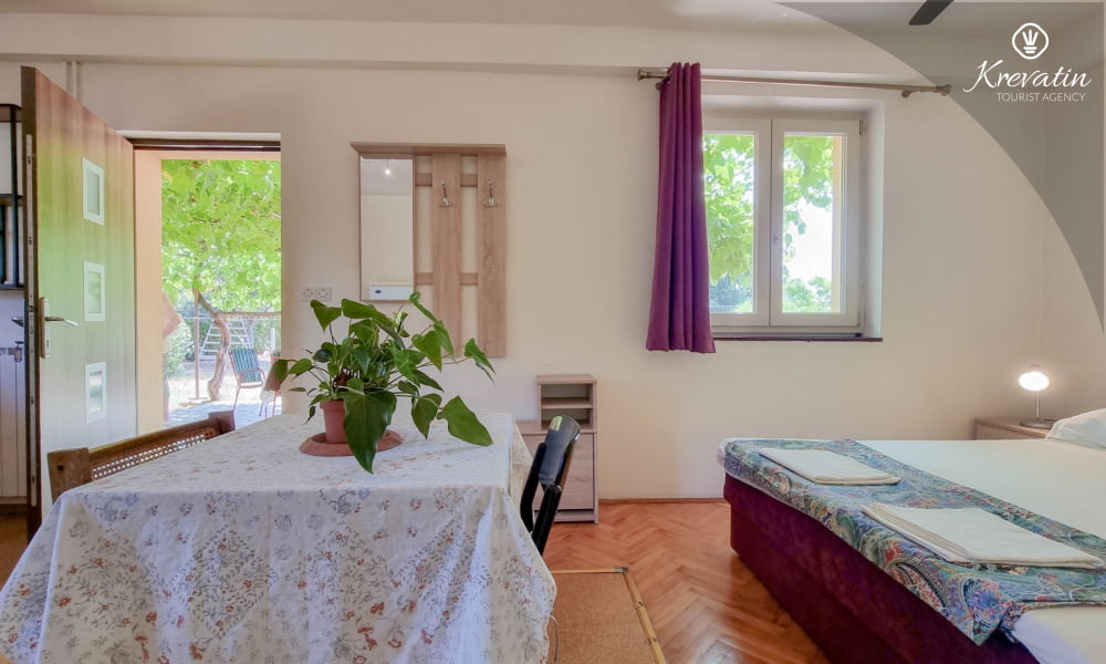 Dieses Zimmer für bis 3 Personen befindet sich im Erdgeschoss und besteht aus einem Schlafzimmer mit Doppelbett und ein Sofabett für eine persone. Außerdem gibt es ein Badezimmer mit Badewanne und WC, sowie eine schöne Terrasse mit Möbel und Garten WLAN, Bettwäsche und Handtücher sind im Preis inbegriffen, Haustiere sind nicht erlaubt.
