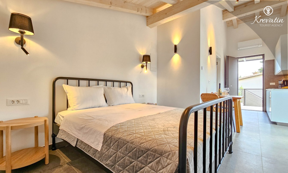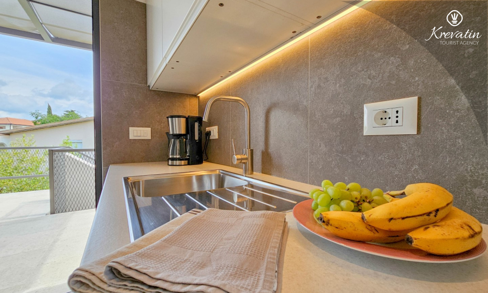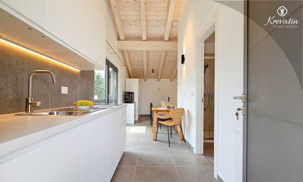 Dieses modern renovierte Studio-Apartment befindet sich im zweiten Stock eines Einfamilienhauses in einem ruhigen Viertel von Novigrad und ist die ideale Wahl für Paare, die Ruhe, Komfort und mediterranes Ambiente suchen.