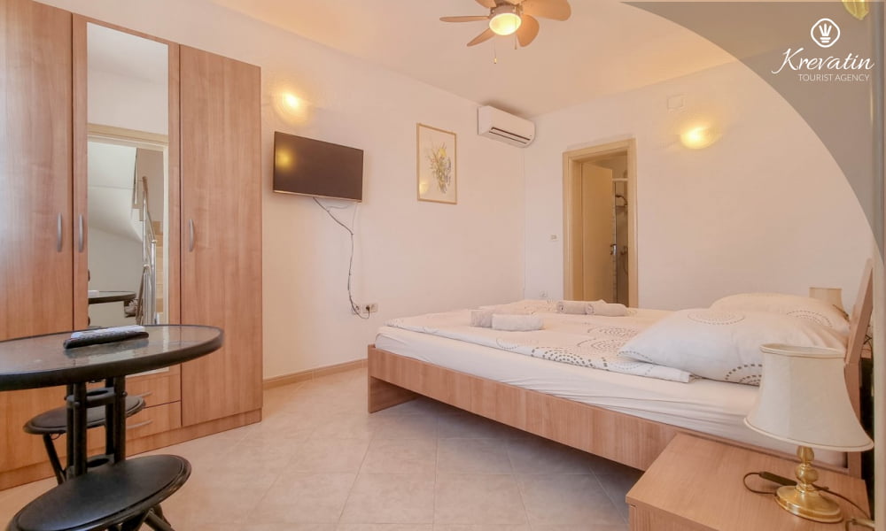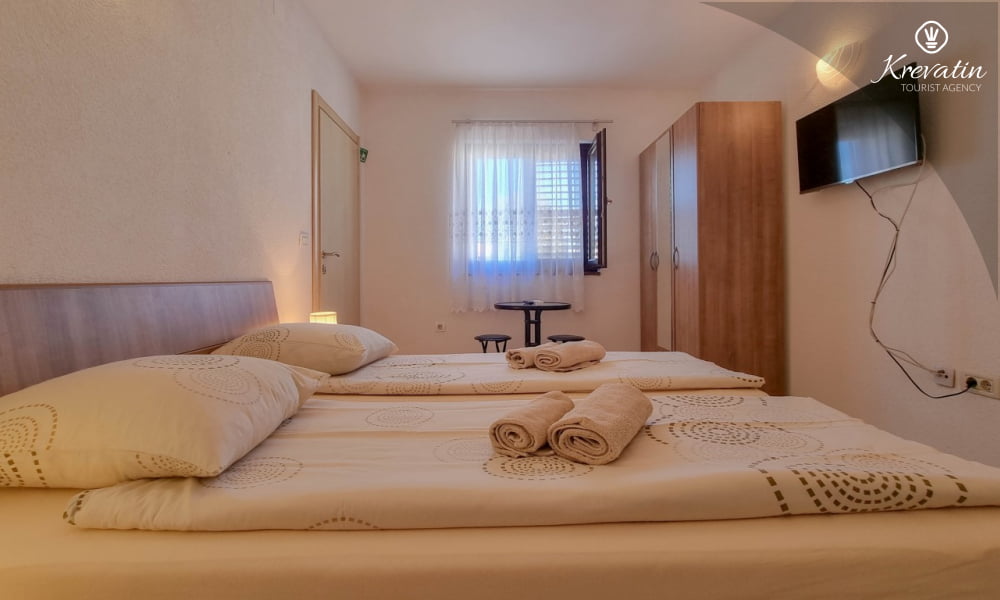 Dieses Doppelzimmer befindet sich im ersten Stock eines Einfamilienhauses in einem ruhigen Viertel von Novigrad, etwa 4 km vom Meer und dem Stadtzentrum entfernt. Es ist ideal für Paare oder Alleinreisende, die eine einfache, aber komfortable Unterkunft als Ausgangspunkt für die Erkundung der Schönheiten Istriens suchen.